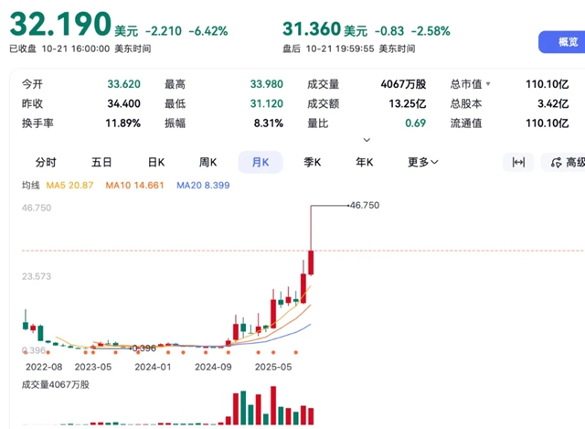 Rigetti Computing在过去一年的股价涨幅约3152%,最高涨幅约3700%,最新市值129.67亿美元。